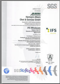 Die Firma Hermann Albers e.K. ist der erste in Hamburg, die die IFS-Zertifizierung im Cash&Carry/Großhandelsbereich auf höherem Niveau für den Handel mit Obst, Gemüse und frischen Kräutern erhalten hat. Daran ändert sich nichts.